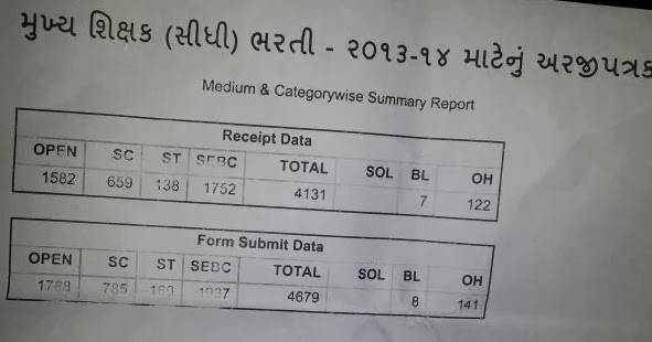 એચ.ટાટ ભરતી ની અરજી સ્વીકારવાના આખરી દિવસે આવેલી અરજી ની વિગતો (જીલ્લાવાર અને જાતીવાર)..............!