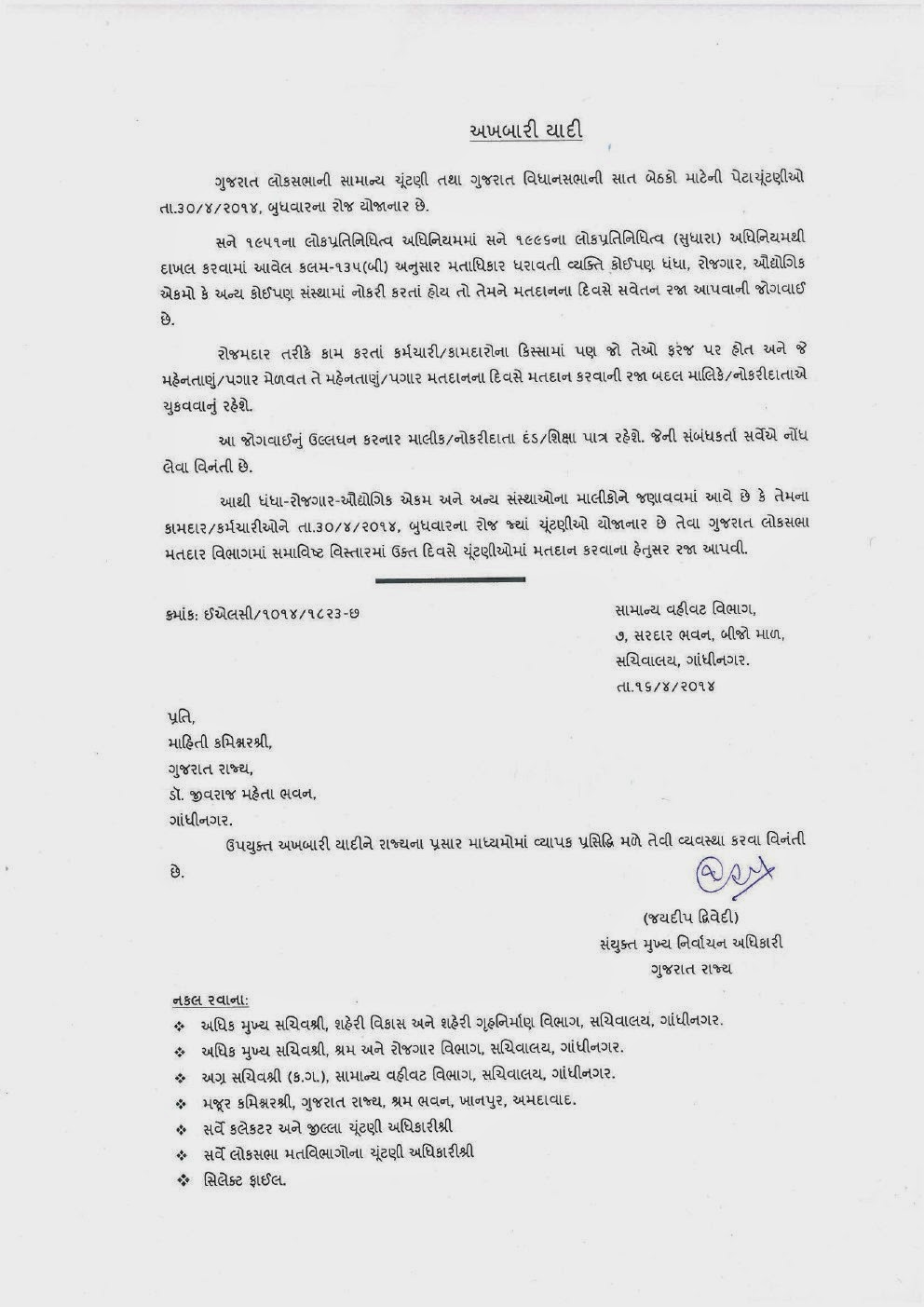 ૩૦-૦૪-૨૦૧૪ નાં રોજ ગુજરાત માં રજા અંગે .......!