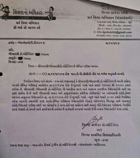 કચ્છ જીલ્લ્લા ના સીઆરસી -બીઆરસી કો ઓર્ડીનેટરની લેખિત પરિક્ષા બાબત .......!