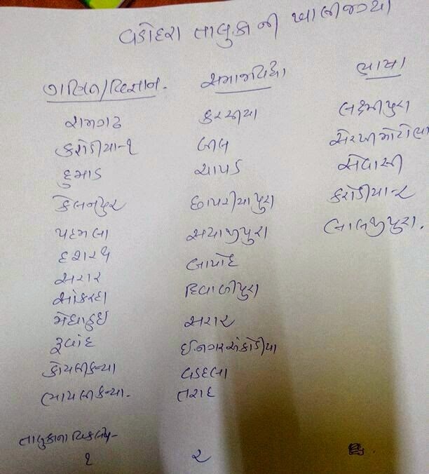 BADALI CAMP MATENI JAGYAO NU LIST BARODA DISTRICT ............!