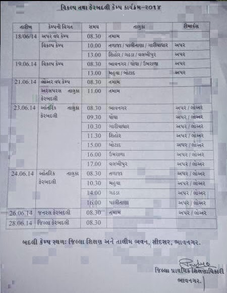 પ્રાથમિક શાળાના શિક્ષકોનાં વિકલ્પ અને ફેરબદલી બદલી કેમ્પ અંગે ( ભાવનગર જીલ્લો) .............!